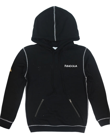 <A 000a001y6c1d>Fungolia Big Hood Fleece Hoodie - Logo (Black with White Stitch)