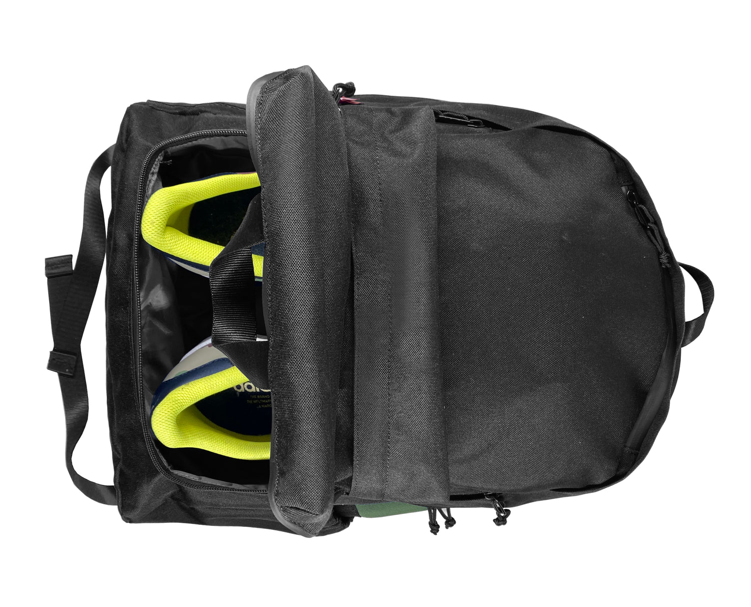 - UNIQUE SPECIAL DESIGN shoes compartment that fits any size sneakers (even high cut) with ease and casually without bulkiness appearance