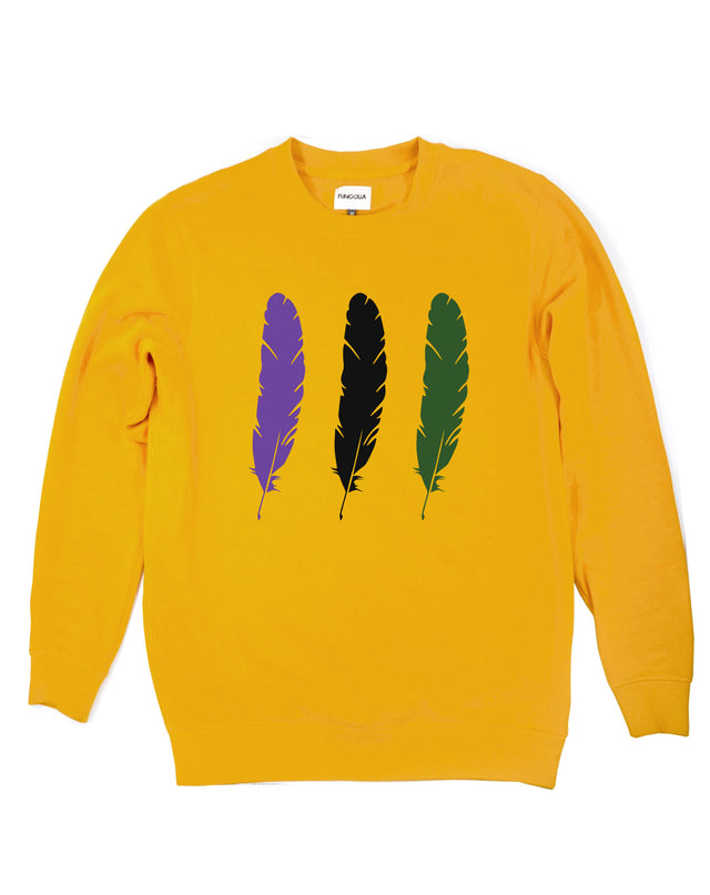 Fungolia Fleece Crew Neck Sweatshirt - WBF Large Feathers (Mustard Yellow) - Xs is backordered and will ship as soon as it is back in stock.