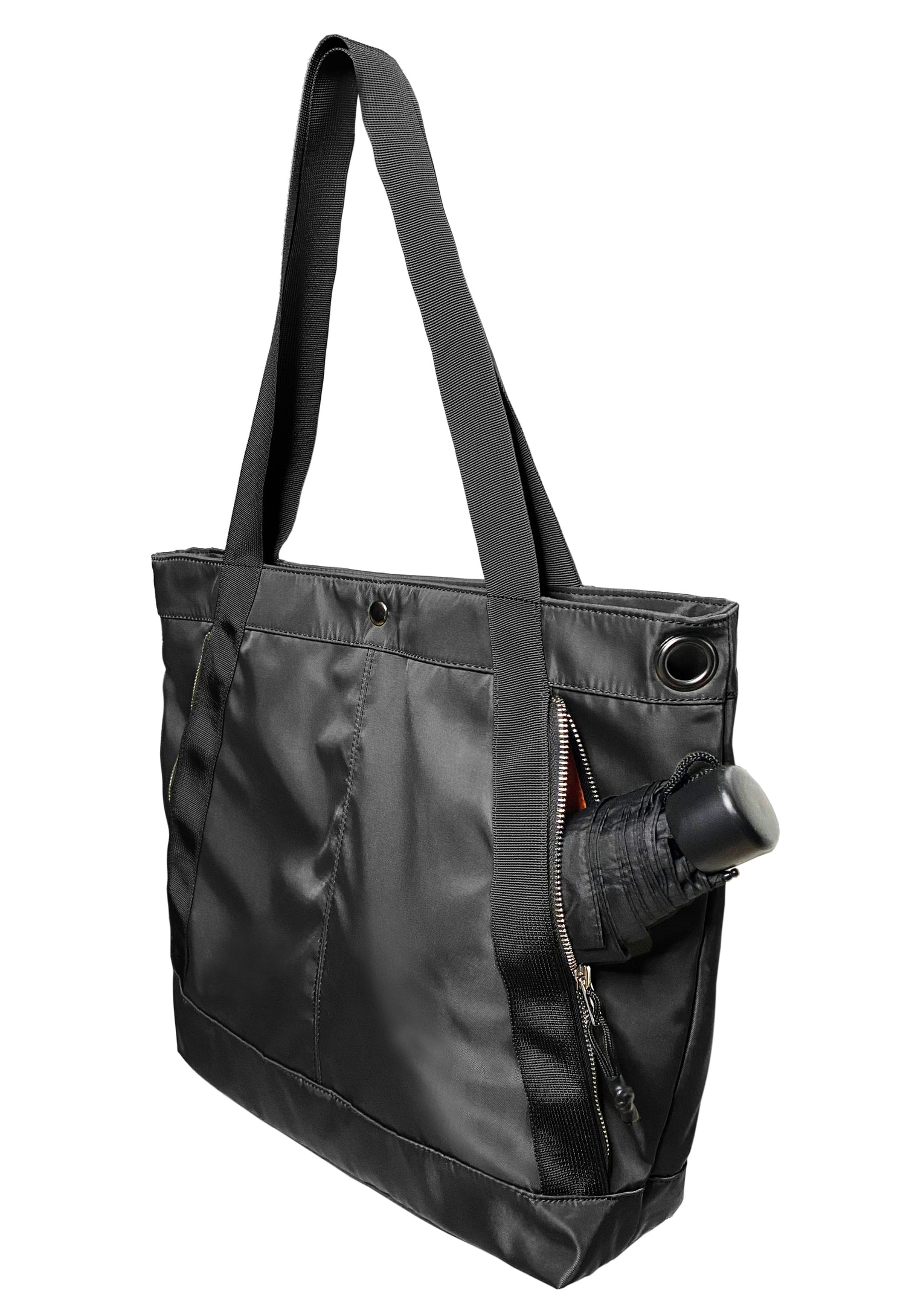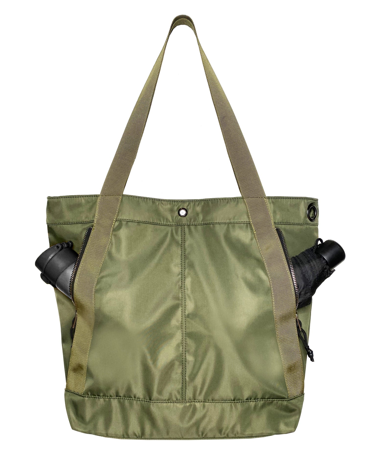 - back side with 2 quick access zip pockets for water bottle and umbrella