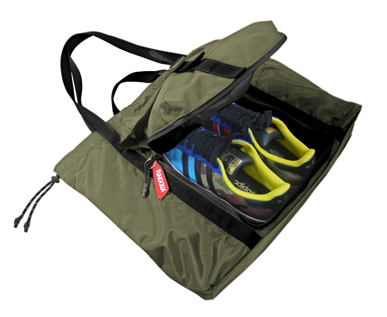 - UNIQUE SPECIAL DESIGN shoes compartment that fits any size sneakers with ease and casually without bulkiness appearance