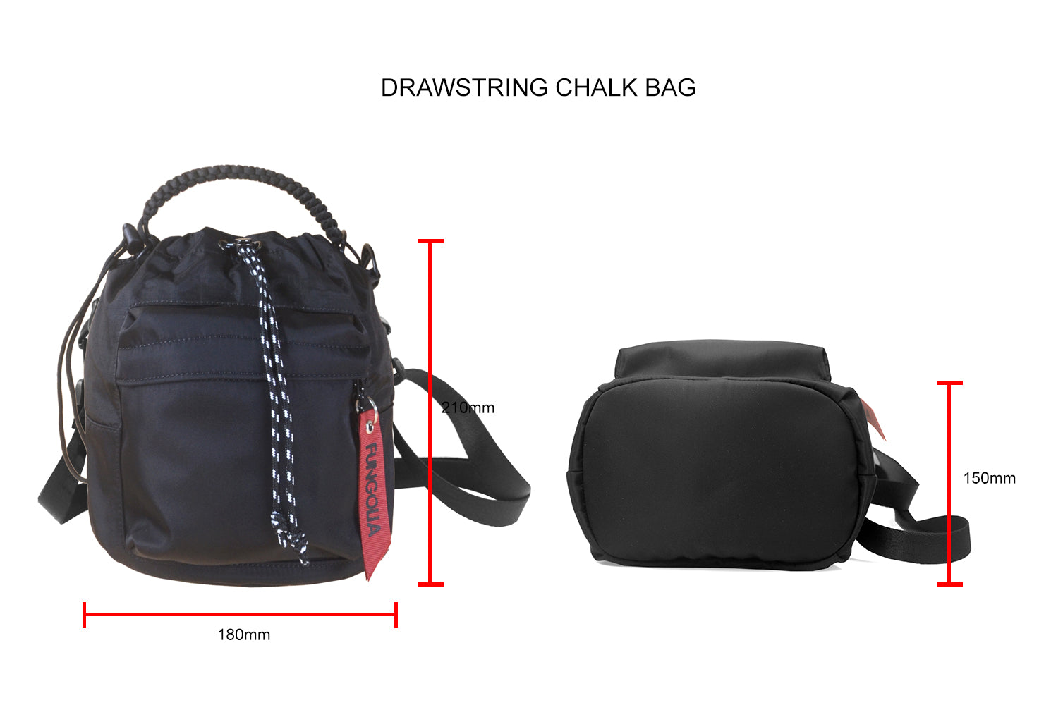 <A 000a001g01> Drawstring Chalk Bag (All Black) (With KOVID-TEX Antimicrobial Lining)
