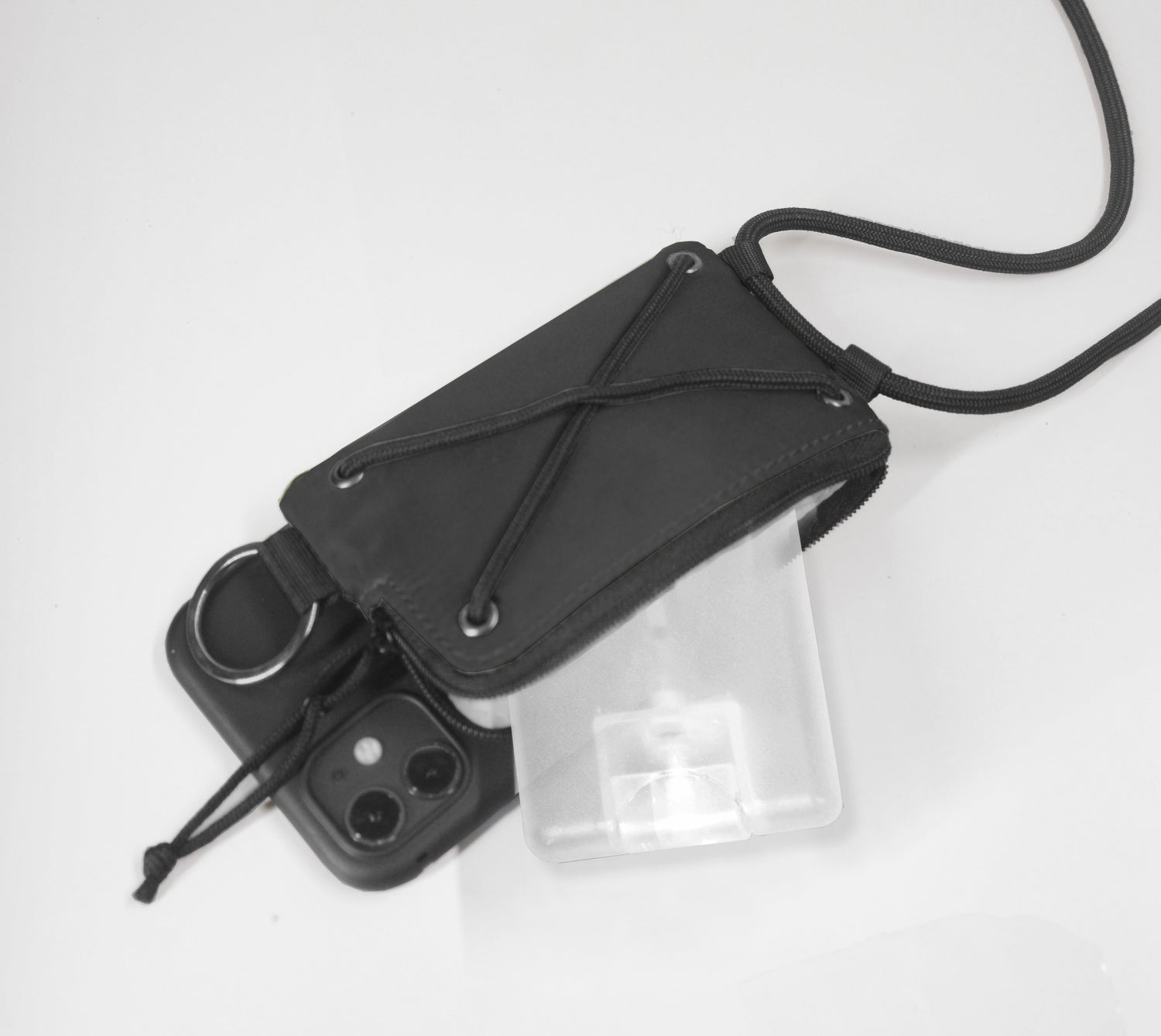 - High quality silicone phone case with adjustable lanyard attached to minimalist zipper pocket